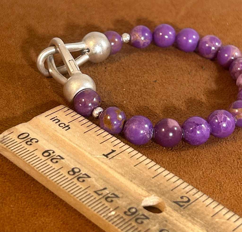 Lovely purple beads with sterling silver clasp. Made by Gloria Sawin. Made in Santa Fe. 7”
