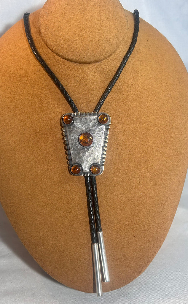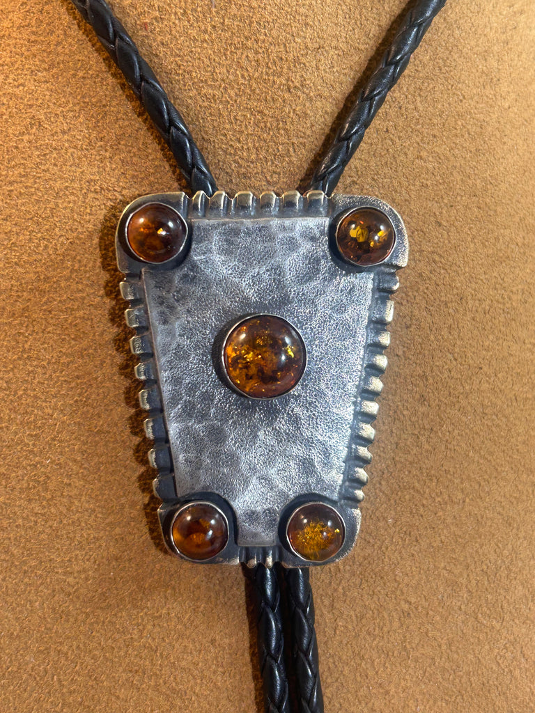 Four Corner Hammered Amber Bolo by Cliff Doran